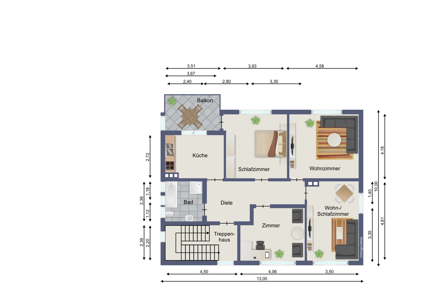 Die Gesamtwohnfläche beträgt ca. 323 m², die sich auf die vier Einheiten verteilen. Sämtliche Wohnungen sind vollständig vermietet und bieten somit eine sofortige Mieteinnahme.