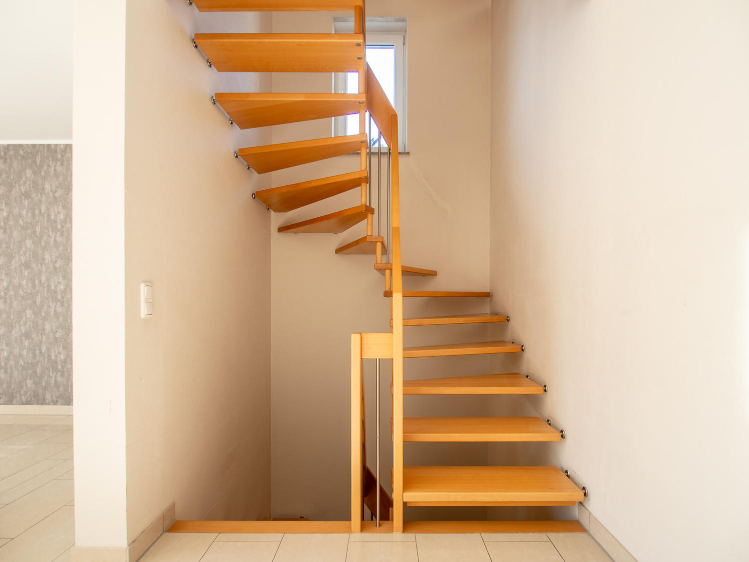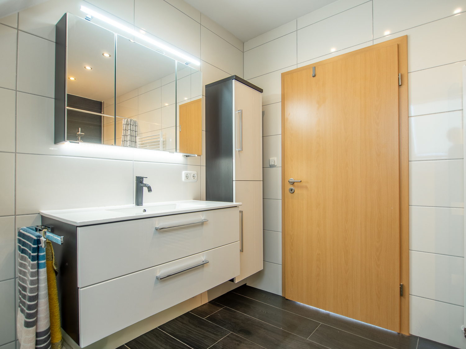 Im Obergeschoss befinden sich drei helle Zimmer, die flexibel als Schlaf-, Kinder- oder Ankleidezimmer genutzt werden können. Das Familienbad ist sehr gut ausgestattet und bietet sowohl eine Badewanne als auch eine separate Dusche – perfekt für Alltag und Entspannung.