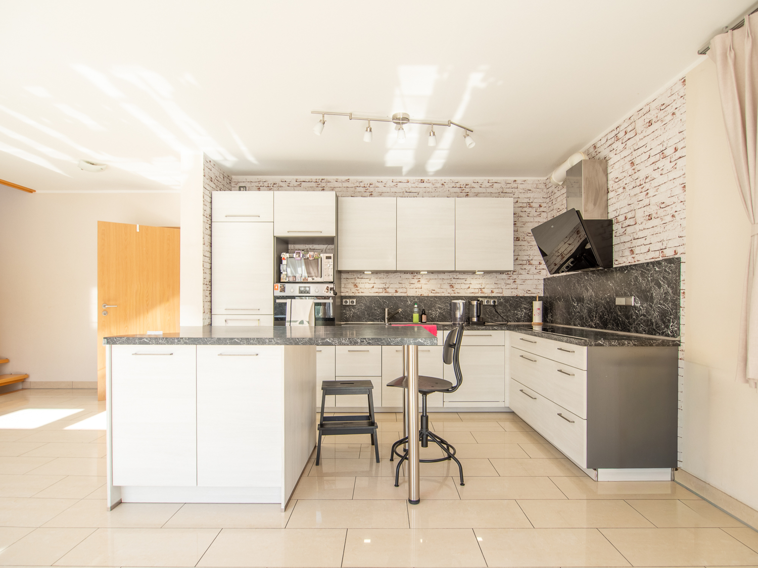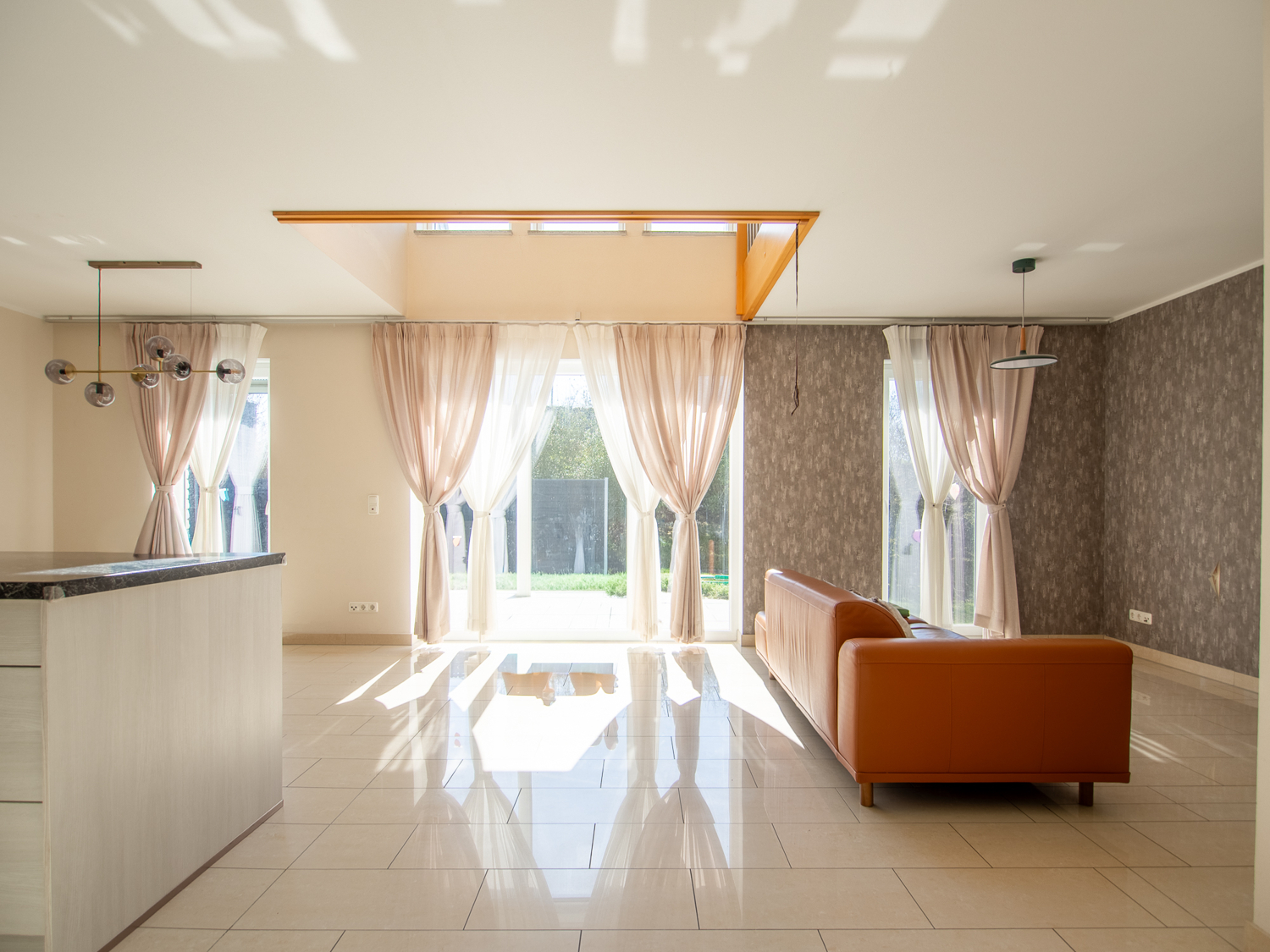 Herzstück des Hauses ist der offen gestaltete Wohn- und Essbereich mit beeindruckender Galerie. Große Fensterflächen sorgen für ein lichtdurchflutetes Ambiente und schaffen eine fließende Verbindung zwischen Innen- und Außenraum. Von hier aus gelangen Sie direkt auf die sonnige Terrasse und in den gepflegten Garten – ideal für entspannte Stunden, Familienleben oder gesellige Abende.