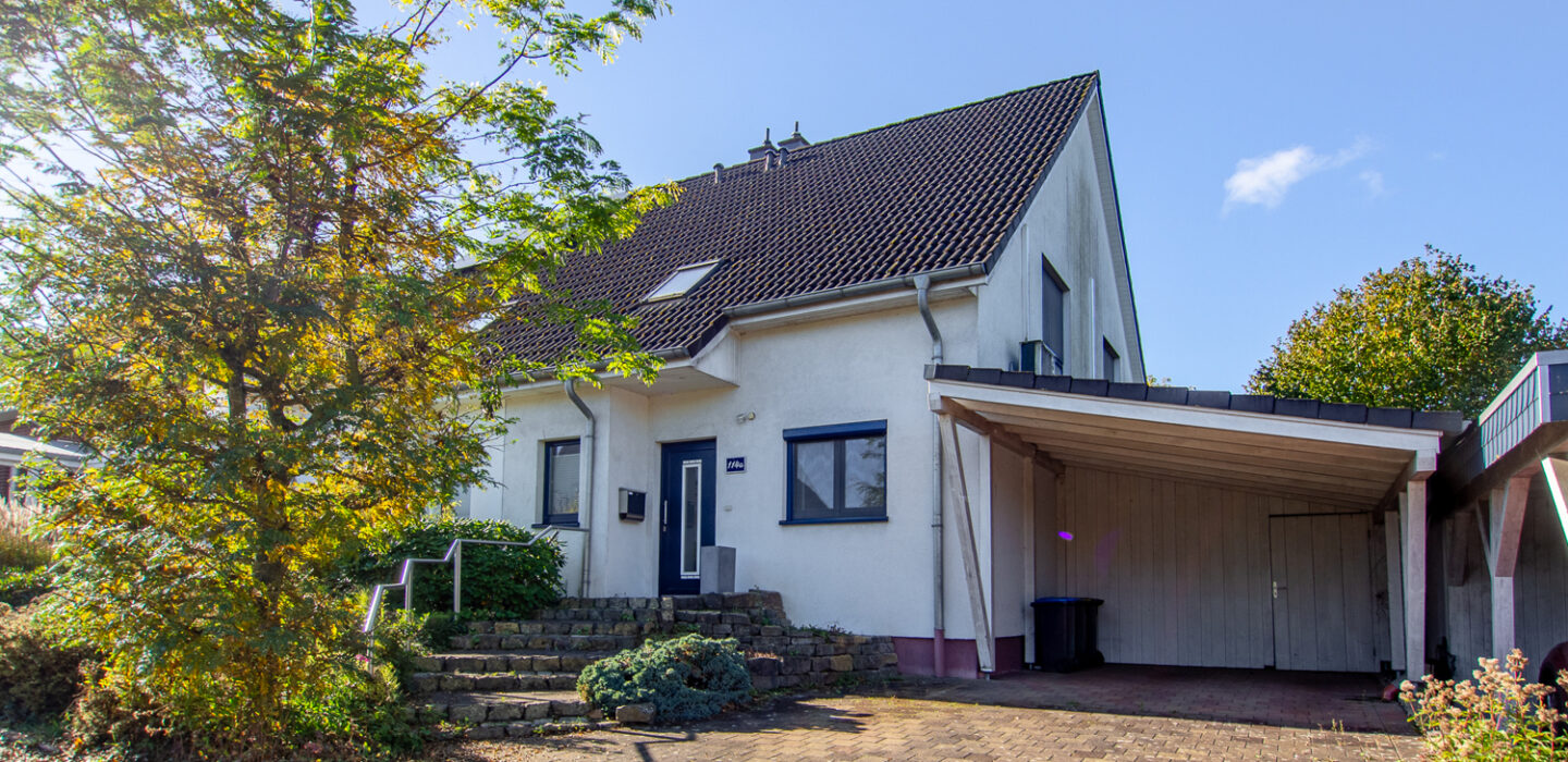 Ein Carport mit angrenzendem Abstellraum sowie ein weiterer Außenstellplatz stehen direkt am Haus zur Verfügung.