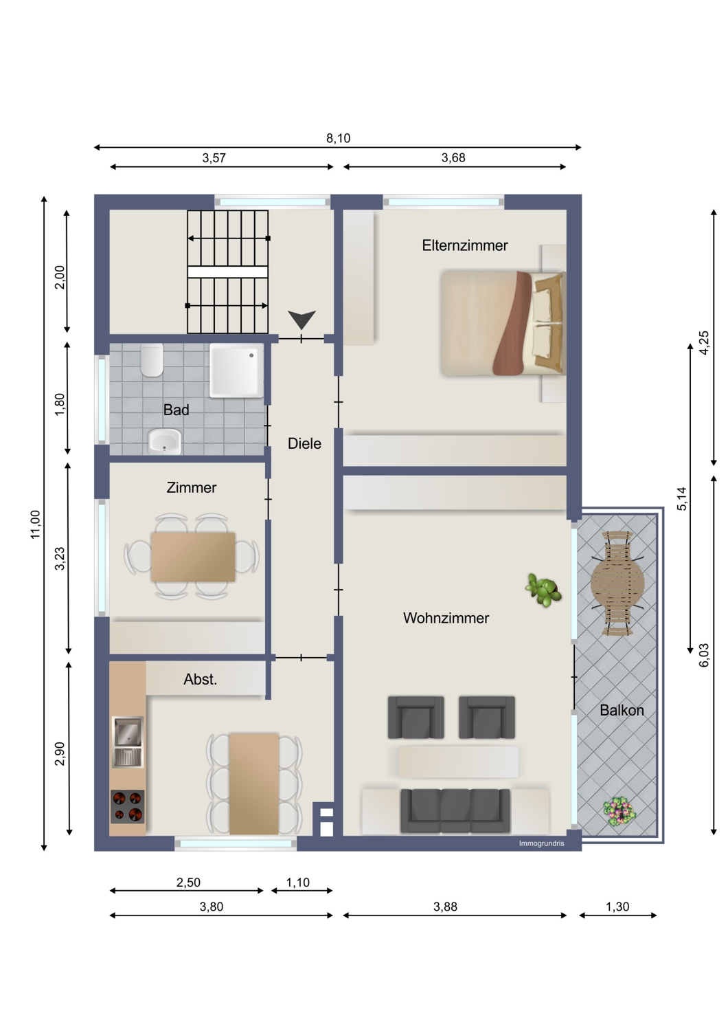 Das Gebäude verfügt über zwei separate Wohneinheiten, eine mit 2 Zimmer, Küche, Bad und Terrasse, die andere verfügt über 3 Zimmer, Küche, Bad und Balkon. Letztere ist über ein massives Treppenhaus erreichbar. Grundsätzlich kann man sich diese Immobilie auch sehr gut als Einfamilienhaus vorstellen. Sie eignet sich somit ideal für Eigennutzer oder auch als für das Wohnen in 2 Generationen.