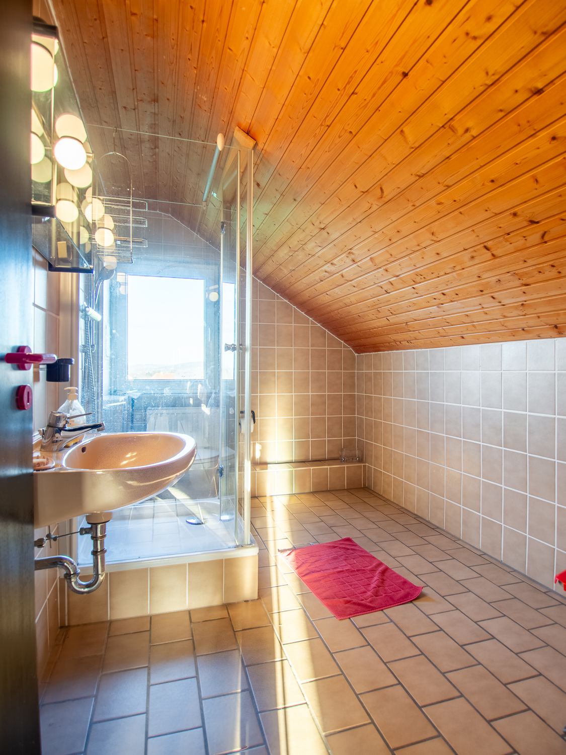 Grundsolide ist auch der Keller, der mit einer Außentreppe versehen ist. Hier befinden sich Stauflächen und Funktionsräume. Besonders interessant ist auch eine kleine Werkstatt und die Garage. Die Immobilie ist fortlaufend instandgehalten worden. Erst 2019 wurden die Terrasse und Balkon saniert und mit neuen Handlauf und Brüstungen aus Edelstahl versehen, die großen Fensterelemente zum Balkon sind 2015 getauscht und das Duschbad im OG in 2018 erneuert worden. In diesem Umfang wurde auch die Heizung ausgetauscht. Ganz interessant ist der wohnlich ausgebaute Dachboden. Hier ist genügend Raum zum Spielen oder für das Hobby vorhanden, ein Platz, den man nicht missen möchte.