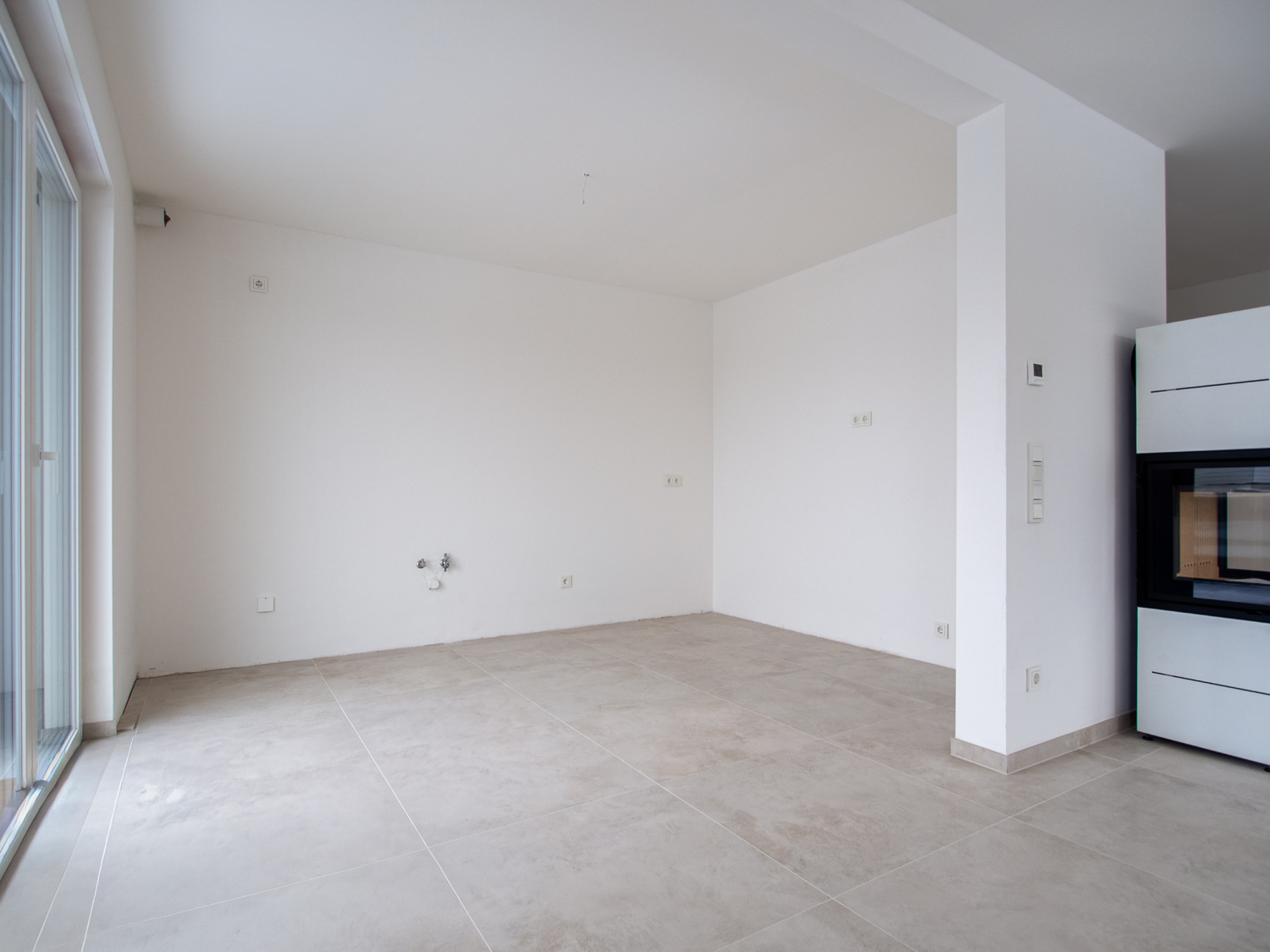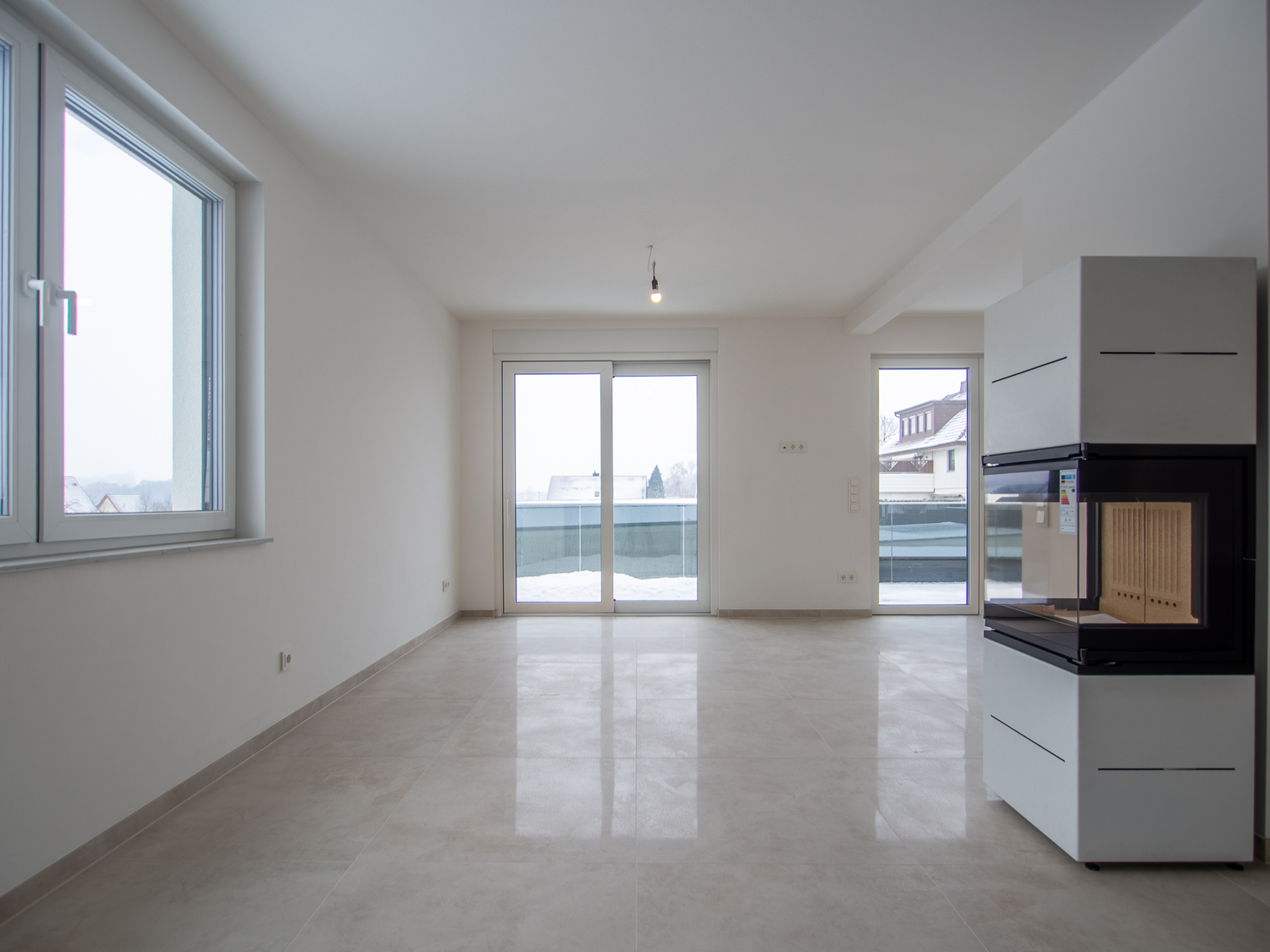 Herzstück der Wohnung ist der großzügige Wohn-, Ess- und Kochbereich, der dank großer Fensterflächen lichtdurchflutet ist und ein offenes, einladendes Wohngefühl vermittelt. Der integrierte Kaminofen sorgt nicht nur für eine besondere Atmosphäre, sondern auch für zusätzliche Behaglichkeit an kühleren Tagen. Von hier aus ist der großzügige Balkon erreichbar, der ausreichend Platz für Sitzgelegenheiten bietet und zum Entspannen im Freien einlädt.